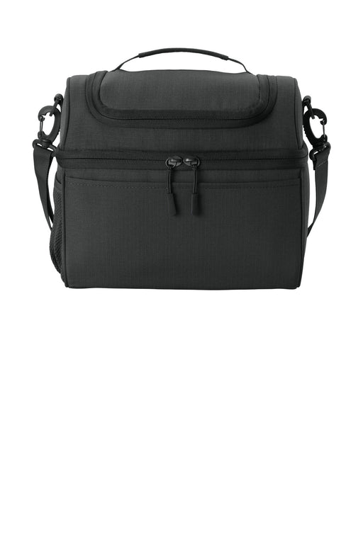 450D ripstop polyester Leak-resistant PEVA lining Web top handle Insulated domed top compartment Zippered, insulated main compartment can hol...