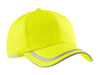 This cap has reflective taping in the sandwich, top of bill, back crown and closure. Features a moisture-wicking CoolMax sweatband.|